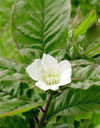 Les feuilles simples, alternes, sont de forme elliptique, un peu aiguës au sommet, et irrégulièrement dentelées. De couleur vert pâle, elles sont glabres à leur face supérieure et un peu tomenteuses en dessous.