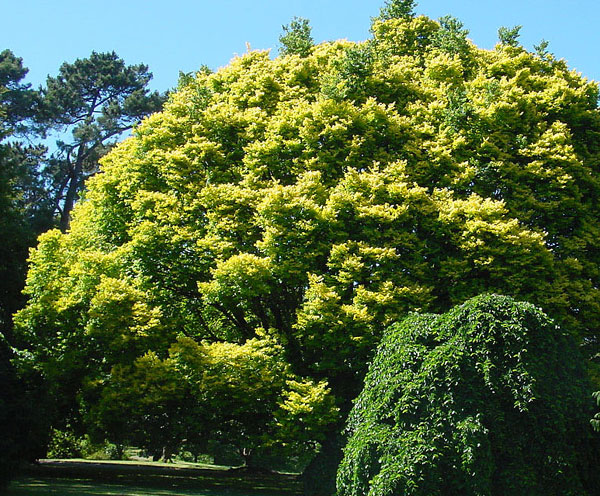 Très beaux arbres dont la longévité peut atteindre plusieurs siècles. Croissance assez rapide. Bois âgé d'une belle teinte rougeâtre, avec une dureté et une résistance remarquable, ce qui le fait rechercher en ébénisterie.