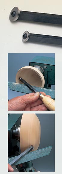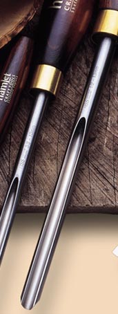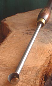 La gouge à anneaux permet de creuser des pièces dans du "bois du bout". C'est un outil très tranchant qui donne un excellent état de surface. L'utilisation est assez complexe et très délicate, mais lorsqu'on sait s'en servir c'est un véritable plaisir de l'utiliser. Il peut avoir une variante à anneaux interchangeables.