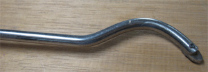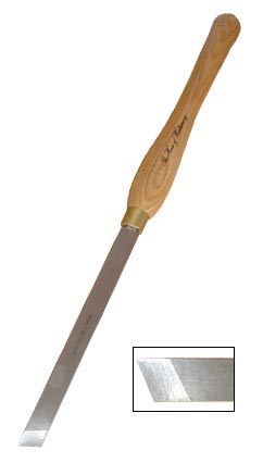 La gouge à "col de cygne" est prévue pour le creusage des formes profondes comme des vases, boîtes à cols très fermées etc. capable de creuser en bois de bout ou de fil. Elle est munie en son extrémité d'une plaquette en fer HSS réglable. Cette plaquette percée agit comme un anneau. Le talon d'appui limiteur de coupe permet de régler très précisément l'épaisseur de la prise de copeaux et favorise l'appui et le maintien de l'outil.