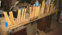 Je conseille d'acquérir un de ces outils, car c'est le prmeier à utiliser de façon simple, il permet de creuser facilement en travail frontal des bois de bout ou de fil. Les racloirs sont des outils très anciens, qui ont pour fonction de parfaire l'état de surface d'une pièce de bois après la mise au rond
