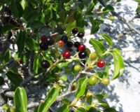 Son écorce lisse noir à pourpre, se détache par bandes circulaires.