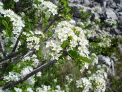 Ses fleurs blanches à 5 pétales groupées par 4 à 10 en racèmes sont très parfumées.